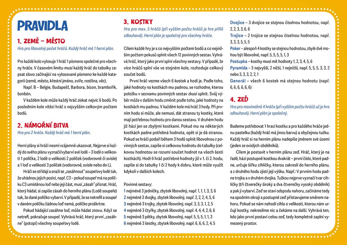 Herní plány vystačí na několik kol a součástí balení jsou i pravidla. Jediné, co budete potřebovat, je tužka. Tak hurá na to! Kdo bude vítěz?