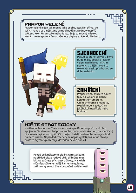Do světa Minecraftu dorazili hladoví piglini, kteří ho chtějí jen pro sebe. Seberte síly, spojte se s nečekanými přáteli a veďte je do bitvy proti nebezpečí z Netheru. Jinak vše pohltí marnost a zkaženost. Uvnitř této oficiální příručky od Mojangu objevíte strategické hry, tipy na stavby i varování, co můžete očekávat od hord piglinů a jejich základny. Snad se vám povede zahnat pigliny zpět do Netheru!