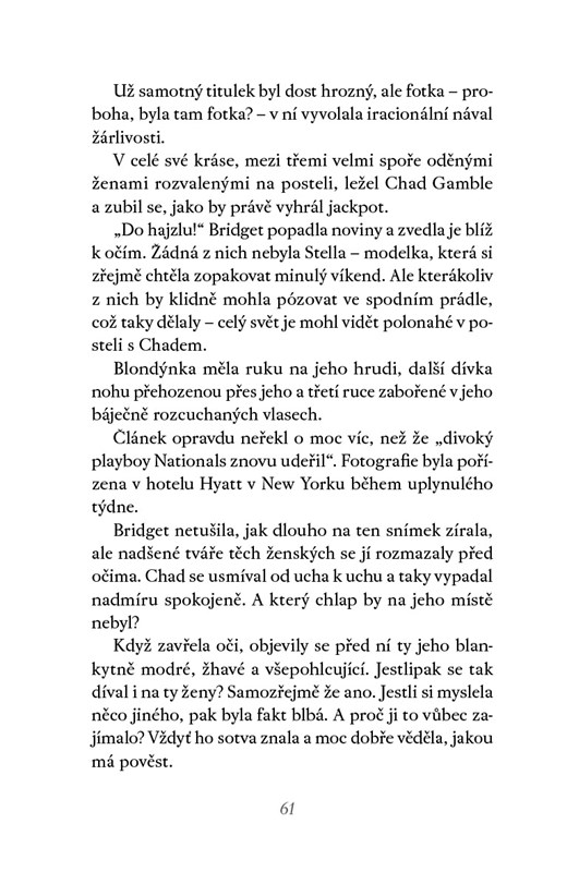 Kdo by netoužil prožít noc s hvězdným baseballistou Chadem Gamblem? Temperamentní zrzka Bridget, která pracuje v kanceláři muzea, nemá ambice sbalit místního playboye. Jejich cesty se však zkříží v klubu, kde se odehrávají erotická dobrodružství. Od Chada se nedá očekávat víc než úlet na jednu noc. Kvůli prodloužení smlouvy s týmem ale musí napravit svoji pověst věčného svůdce a Bridget by jako jeho přítelkyně mohla působit důvěryhodně. I pro ni má tato spolupráce výhody. Může si polepšit nejen v sexuálním životě, ale taky na společenském žebříčku. Ale co když už má Chad jednorázových známostí dost a chtěl by zažít něco víc? Jsou jeho emoce opravdové, nebo jde jenom o hru pro média?
