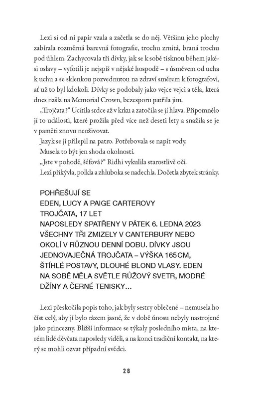 „Strhující! Jeden z nejlepších mysteriózních thrillerů, které jsem v poslední době četla. Neustále jsem byla napjatá a snažila se odhadnout, co se vzápětí stane… až tak napínavé.“ - recenze na Goodreads
