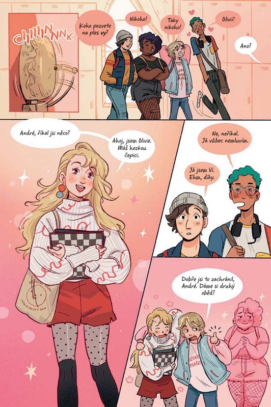 Má to ale háček. Všichni Viini noví kamarádi předpokládají, že Vi není na kluky. A ještě předtím, než svou novou lásku pozve na ples, ji Orsino požádá, aby mu pomohla zapůsobit na Olivii, která se líbí jemu. Jenže Olivie se zajímá o někoho jiného… o samotnou Vi. Dokáže někdo tenhle zašmodrchaný milostný trojúhelník rozmotat?