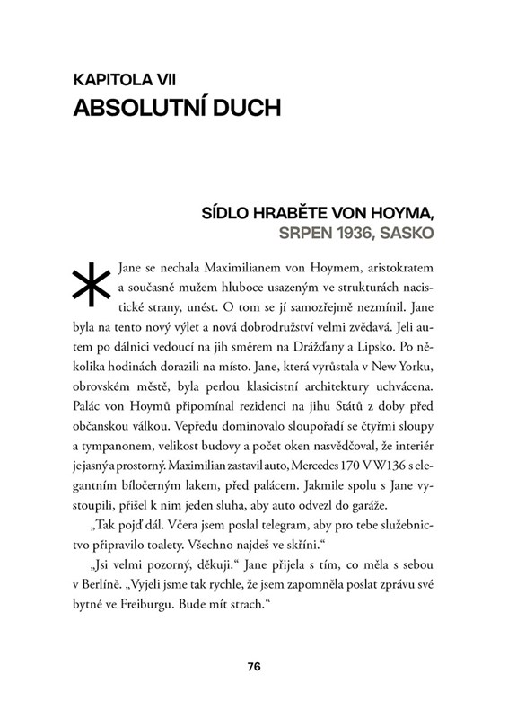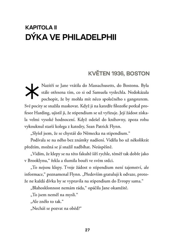 Studentka filozofie na Harvardově univerzitě Jane Coulfieldová se v roce 1936 vydá do Německa, aby se lépe seznámila filozofií Martina Heideggera a pochopila podstatu třetí říše pod vládou Hitlera. Tam si začne aférku s mladým Němcem, ale věci se zkomplikují a Jane musí uprchnout. Po vypuknutí války ji však minulost nečekaně dostihne… Na své cestě se Jane setkává s Josipem Titem, Hannah Arendtovou i dalšími historickými osobnostmi a zažívá peklo koncentračního tábora Jasenovac.