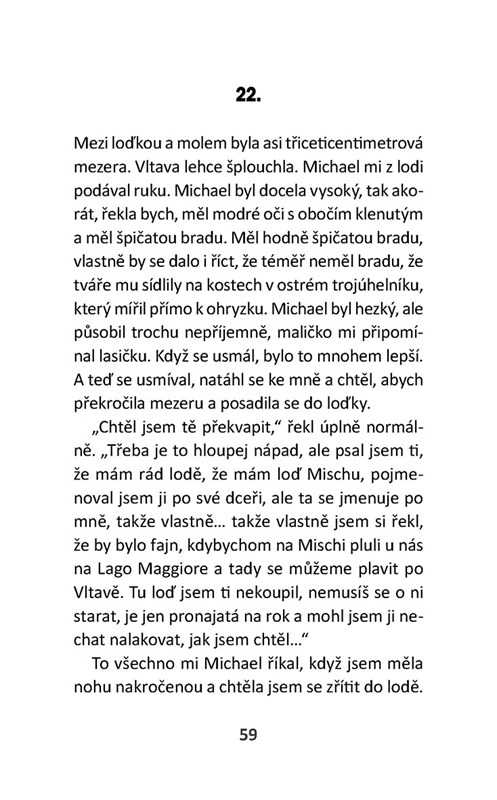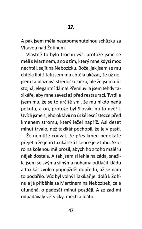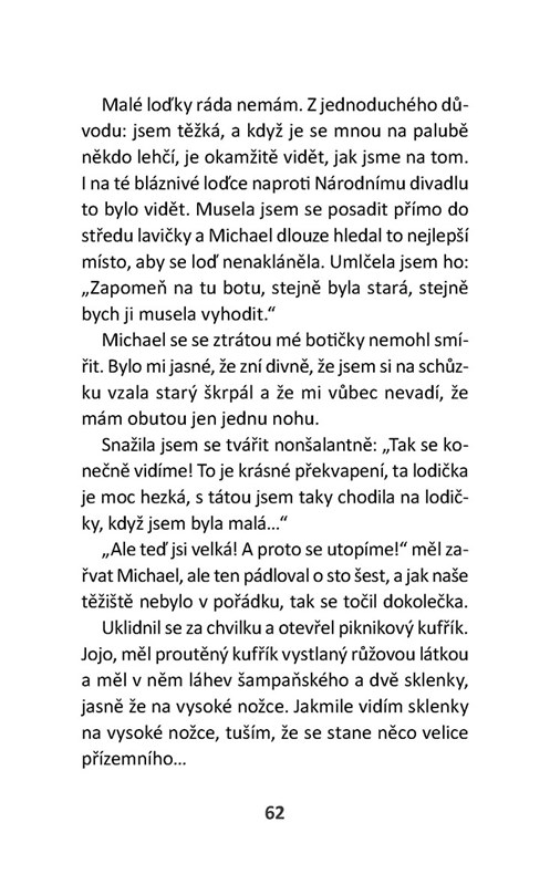 Je něco jiného jít na rande, když je vám čtrnáct, než když vám je přes padesát. Je něco jiného myslet si, že všechno, včetně toho rande, je tak nějak na zkoušku, a že to buď báječně dopadne, nebo ne… Když je vám víc než padesát a máte rande, víte skoro jistě, že to nevyjde, ale přesto je ve vás absurdní naděje, že třeba, navzdory všem okolnostem, pravděpodobnosti, zkušenostem, vás čeká něco úchvatného a vy jdete na rande s odhodláním člověka, který dostal k narozeninám zážitkový dárek a je přinucen skočit s padákem, i když se mu vůbec nechce!