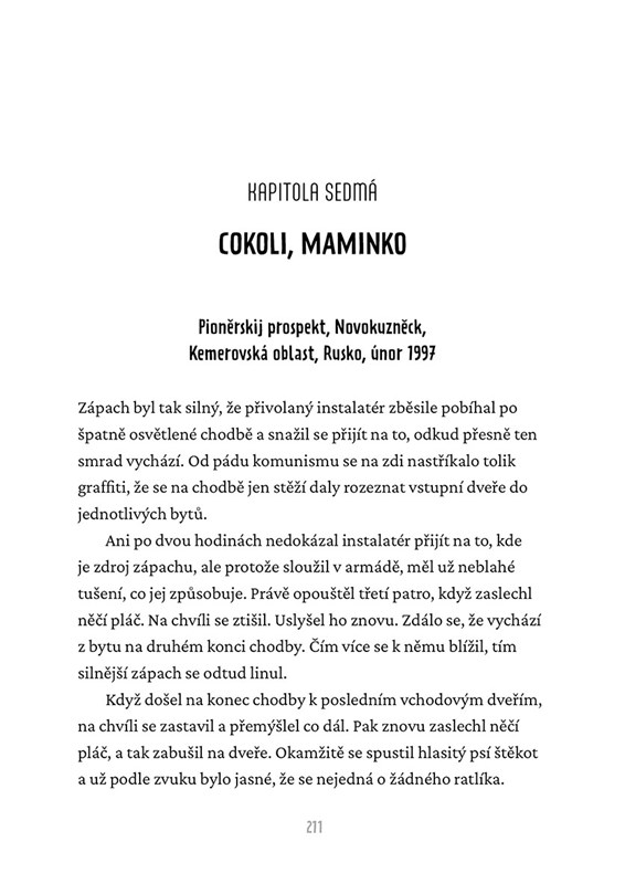 Jméno Andreje Čikatila zná téměř každý. Ale osudy „Angarského maniaka“ Michaila Popkova, travičky dětí Tamary Ivaňutinové nebo třeba „Lovce“ Nikolaje Džumagalijeva získaly mnohem menší publicitu. Světová veřejnost se mylně domnívá, že hlavním „domovem“ sériových vrahů jsou Spojené státy. Kriminalisté však odtajnili, že Rusko a jeho komunistický předchůdce Sovětský svaz se staly skrytou líhní těchto zločinců již o desítky let dříve. Závěry expertů odhalily, že nebývalý rozmach sériových vražd v dnešním Rusku začal na konci 60. let a pokračoval i v 21. století. Zastaralé policejní vyšetřovací techniky v kombinaci s autoritářským režimem, který zatajoval všechny negativní stránky země, vedly k tomu, že skrývající se vrazi zde prostě „nevyplavali“ na povrch. Svou roli sehrály i technologická zaostalost, otevřená korupce nebo třeba obecné pohrdání životem mnoha údajně podřadných obětí. S některými příběhy se český čtenář může seznámit poprvé právě v této publikaci známého autora true crime titulů Wensleyho Clarksona.