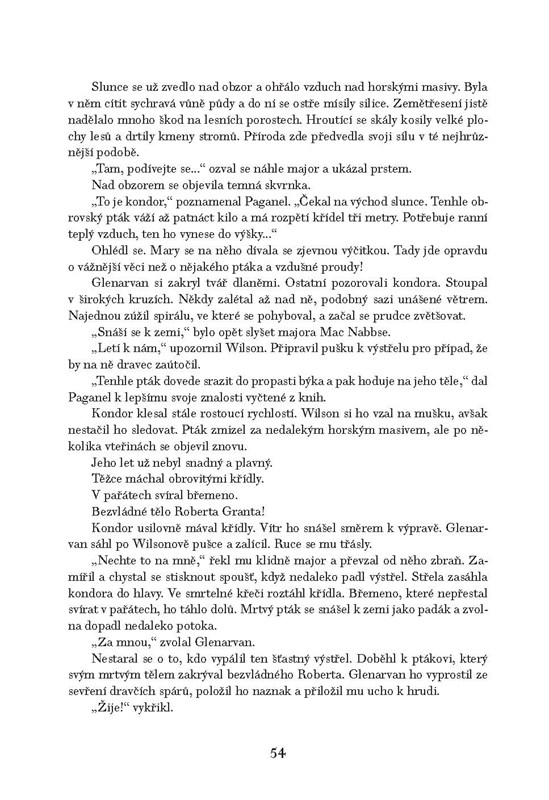 Ve svém rozsáhlém díle popsal Jules Verne cestu kolem světa hned v několika románech. V žádném z nich však hlavním hrdinům nenavršila jeho fantazie do cesty tolik děsivých překážek jako zde. Hrdinu románu lorda Glenarvana a jeho blízké vtáhla do smrtelného dobrodružství touha pomoci kapitánu Grantovi. Ten ztroskotal kdesi ve světě, přičemž vzkaz nalezený ve žraločím břiše poskytl jen jediné vodítko: to místo se nalézá kdesi na sedmatřicáté rovnoběžce jižní zeměpisné šířky. Nezbude tedy než putovat pustinami Jižní Ameriky a pak Austrálie a Nového Zélandu. Překážky vytváří nespoutaná příroda, ať už to jsou zemětřesení nebo větrné smrště, ale i lidé, lidojedi, uprchlí trestanci a především výlupek všeho zla, chladnokrevný zrádce. Čtenář dostává tento příběh do rukou opět v převyprávěné podobě podtrhující napínavost děje a vyzdobený skvostnými ilustracemi Zdeňka Buriana. Příběh se bude čtenáři odvíjet před očima jako dobrodružný film, od něhož se jen těžko dokáže odtrhnout.