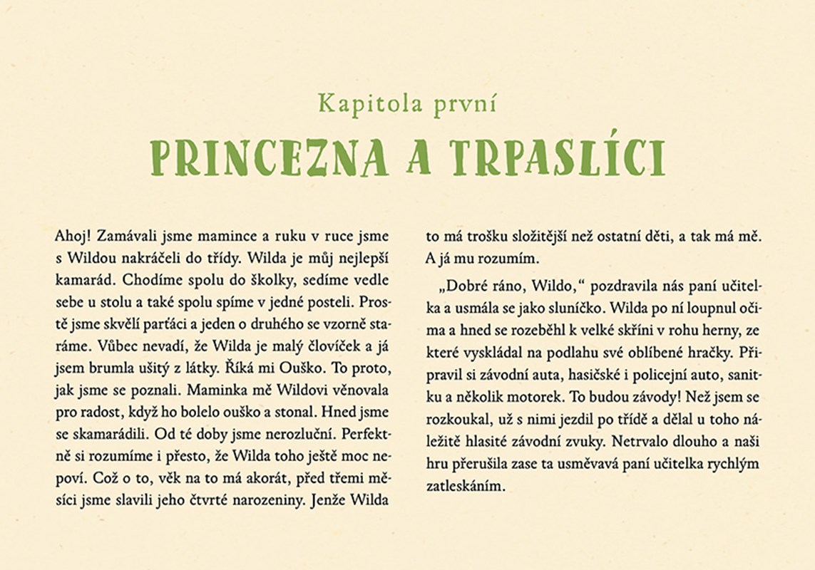 Wilda společně se svým medvídkem jménem Ouško přibližuje čtenáři běžný den ve svém každodenním životě. Často se však oba kamarádi setkávají s neporozuměním a různými nástrahami okolního světa, které Wildu kvůli jeho vývojové dysfázii provázejí. Náročné situace se mění v pohádkové příhody, které chlapci usnadňují vyrovnat se s jeho břemenem. Příběh Wildy a Ouška poodkrývá tajemství dětské mysli a snaží se, aby si k dětem s poruchou řeči našlo správnou cestu porozumění a láskyplného přijetí nejen jejich nejbližší okolí.