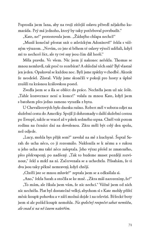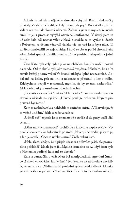 Lucy Evansová se stěhuje do Londýna, kde ji čeká vysněné univerzitní studium. Když se v parku setká s nebezpečně pohledným a nesnesitelně arogantním Thomasem, zadoufá, že už ho nikdy neuvidí. Jenže osud má zvláštní smysl pro humor – Thomas se totiž nečekaně stane nedílnou součástí jejích dní. A tak začíná série bouřlivých střetnutí, během nichž se hranice mezi láskou a nenávistí rozpouští jak kostka ledu v letním drinku. Pustí si jeden druhého k tělu, nebo zůstanou nepřáteli na život a na smrt?
