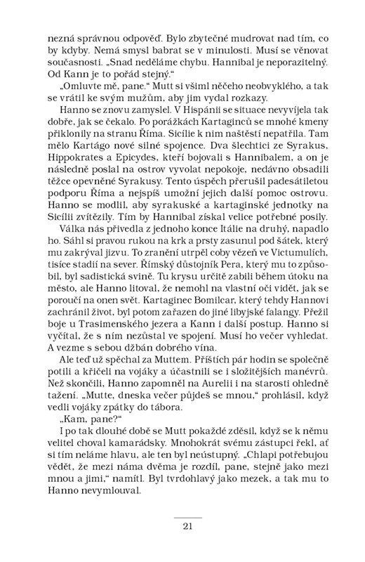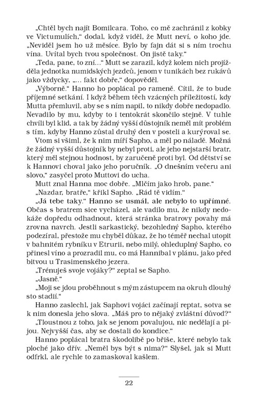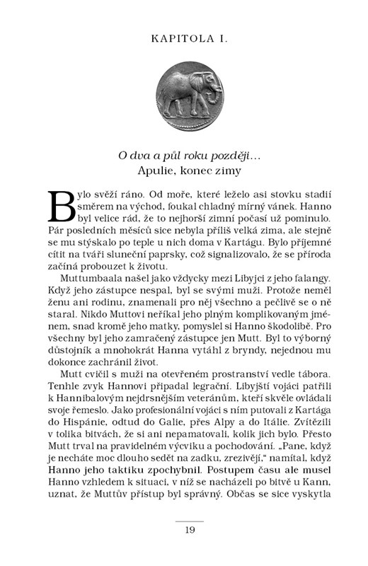 Když se mi naskytla příležitost napsat sérii o druhé punské válce (218–202 př. Kr.), bez váhání jsem se jí chopil. To období mě fascinovalo už řadu let. Slovo impozantní je poněkud zprofanované, ale mám pocit, že pokud hovoříme o tomto neuvěřitelném, sedmnáct let trvajícím boji, kdy často nebylo jisté, na čí stranu se přikloní štěstí, je zcela namístě. Pokud by se v jeho průběhu jen o málo vychýlilo opačným směrem, jak se stalo mnohokrát, život v Evropě by byl dnes docela jiný. Kartaginci se v mnohém lišili od Římanů, ale nebyli zdaleka tak špatní, jak nás přesvědčují dějiny. Byli to odvážní průzkumníci, výborní obchodníci, chytří podnikatelé a stateční vojáci. Tam, kde se Římané často snažili dobývat území válkami, oni spíš získávali moc díky obchodu a přírodním zdrojům.