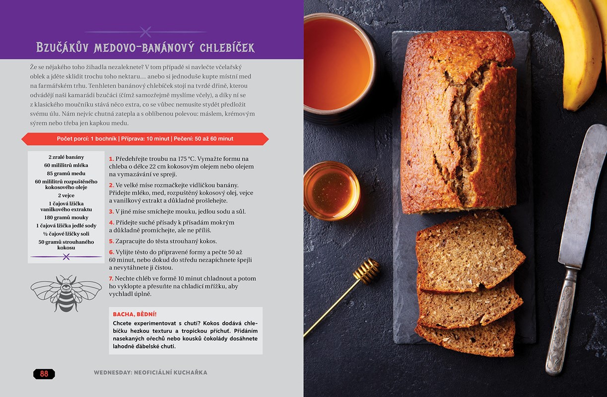 Již od roku 1938, kdy postava Wednesday Addamsové poprvé spatřila temno světa, si tato svérázná dívka s charakteristickými copánky a vražednými způsoby získává srdce děsivého počtu vyděděnců. Tato jedinečná kuchařka, vytvořená fanoušky a pro fanoušky, inspirovaná populárním seriálem Wednesday, vám představí recepty na výstřední pokrmy prosycené ďábelskými chutěmi, které by jiní možná raději drželi pod pokličkou.