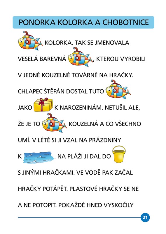 Zapojte vašeho předškoláka a nechte ho „číst“ pomocí obrázků. Naučí se sledovat text a seznámí se s velkými písmeny abecedy. Kniha je vhodná také pro prvňáčky, kteří se učí číst genetickou metodou.