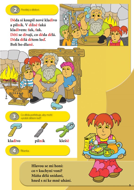 V druhé části děti plní hravou formou různé úkoly, kde procvičují fonematický sluch, předložkové vazby, postřeh, rozvíjí slovní zásobu, zrakovou orientaci a další důležité schopnosti a dovednosti.