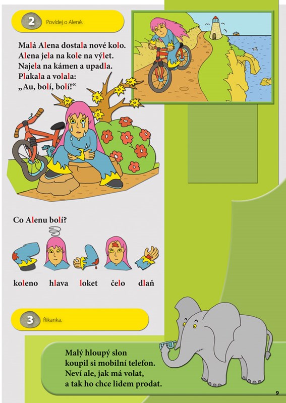 Tato kniha je určena především dětem předškolního věku a prvňáčkům. Mohou ji využívat nejen rodiče, ale také učitelé v mateřských a základních školách a speciální pedagogové. První část knihy obsahuje návody k procvičování hlásek, které činí dětem největší potíže (Ď, Ť, Ň, L, C, S, Z, Č, Š, Ž, R, Ř). Pomocí veselých obrázků, krátkých příběhů a nových říkanek si děti upevní správnou výslovnost a zlepší vyjadřovací schopnosti.