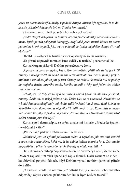 Kurt Austin a posádka NUMA riskují vše, aby zabránili bezohlednému obchodníkovi se zbraněmi v krádeži neocenitelného starověkého pokladu v novém napínavém románu velmistra dobrodružství, Clivea Cusslera. V roce 1074 př. n. l. zmizí z hrobek egyptských faraonů obrovské poklady. V roce 1927 zmizí odvážný americký letec při pokusu o transkontinentální let. A v současnosti se u pobřeží Skotska potopí rybářský trawler i se svým záhadným nákladem. Jak spolu tyto tři záhadné události souvisejí? Při hledání odpovědí se tým NUMA spojí s agenty britské MI5 a společně se pustí do rozsáhlého pátrání. Jejich nepřítelem je Bloodstone Group, konglomerát obchodníků se zbraněmi a zlodějů, kteří se snaží ukrást starobylé relikvie na obou stranách Atlantiku. Kurt a jeho tým se brzy zapletou do zrádné honby za pokladem, když se snaží najít ztracené egyptské bohatství…