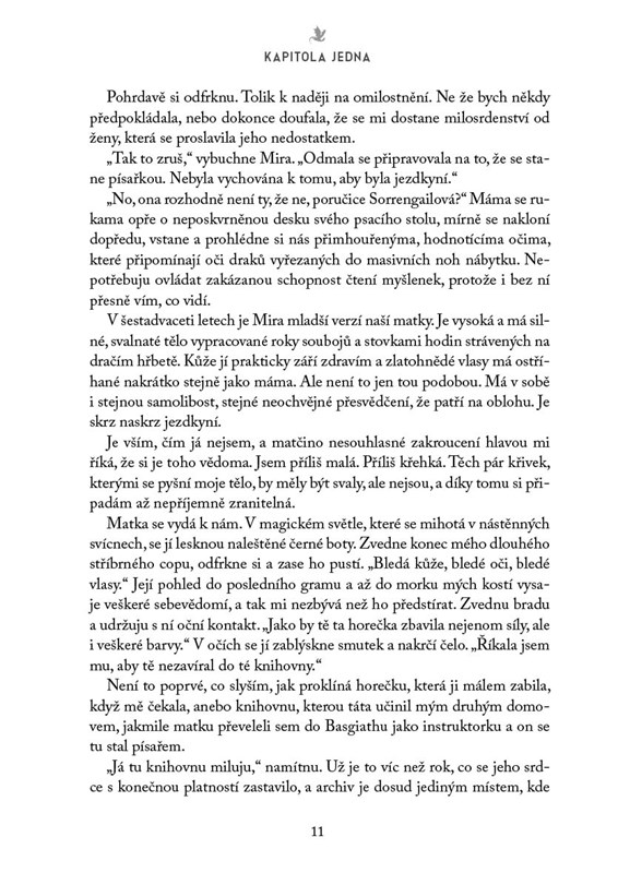 Dvacetiletá Violet Sorrengailová měla nastoupit do kvadrantu písařů a strávit život mezi knihami. Její matka, nesmlouvavá velící generálka, jí však nařídí, aby se připojila ke stovkám kandidátů toužících dostat se mezi navarrskou elitu: dračí jezdce. Violet chybí trénink, navíc je menší než ostatní a draci se s „křehkými“ lidmi nespojují. Spálí je! Proto bude potřebovat všechen svůj důvtip, aby obstála. Brzo ale zjistí, že z Basgiathské válečné školy vedou jen dvě cesty ven: absolvovat, nebo zemřít.