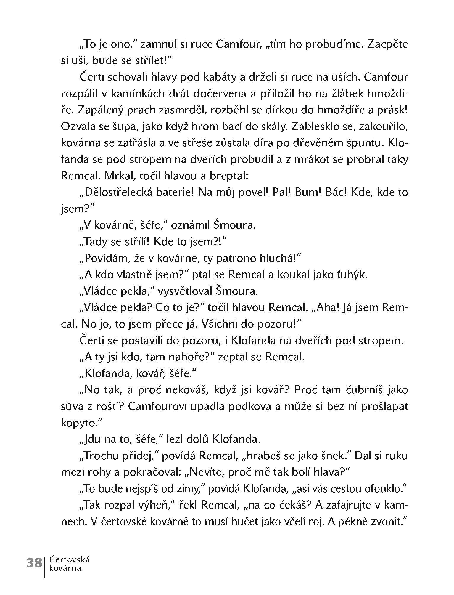 Mocný vládce Remcal, brepta Šmoura, kulhavý rozumbrada Camfour, koktavý Maťátko a malý neposeda Prskavka jsou pěkně povedená čertiska. Nejradši lenoší v teplém peklíčku, když však jde o něco dobrého na zub nebo nějakou lumpárničku, hned ožijí. A protože jsou to popletové, o rozruch a taškařice je postaráno. U všech čertů, to zas byla mela, když se vyhrnuli na svět! Jakmile se pořádně vyřádí, spokojeně zalezou zpátky do svých pelechů. A to by v tom byl čert, abyste se s touhle rohatou knížkou nepobavili!