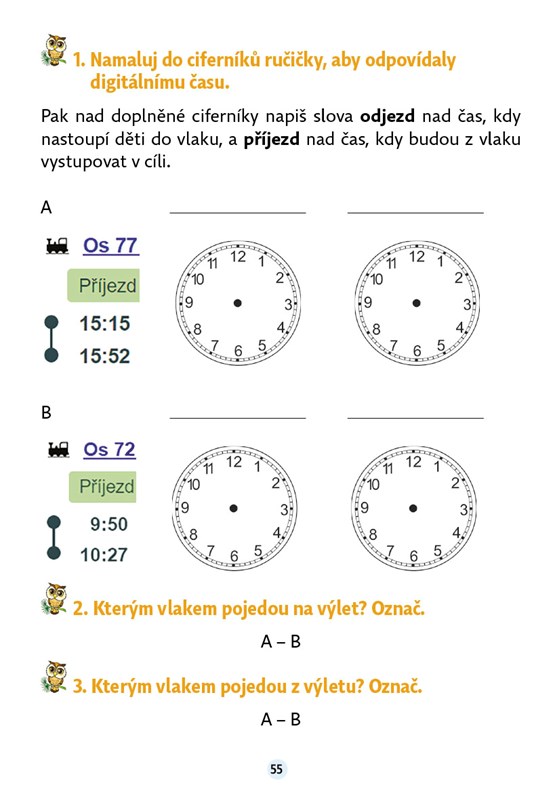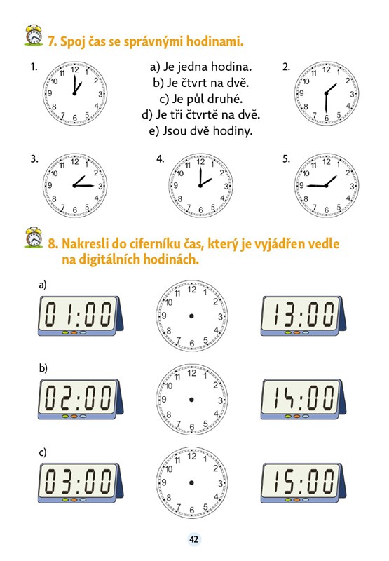Sešit obsahuje tvořivé a hravé úkoly, vybarvování, hledání rozdílů či bludiště. Díky nim se mohou naučit poznávat čas na ciferníku hodin, pojmenovat fáze dne či dny v týdnu, orientovat se v kalendářním roce podle měsíců nebo ročních dob. Samozřejmostí je klíč správných řešení.