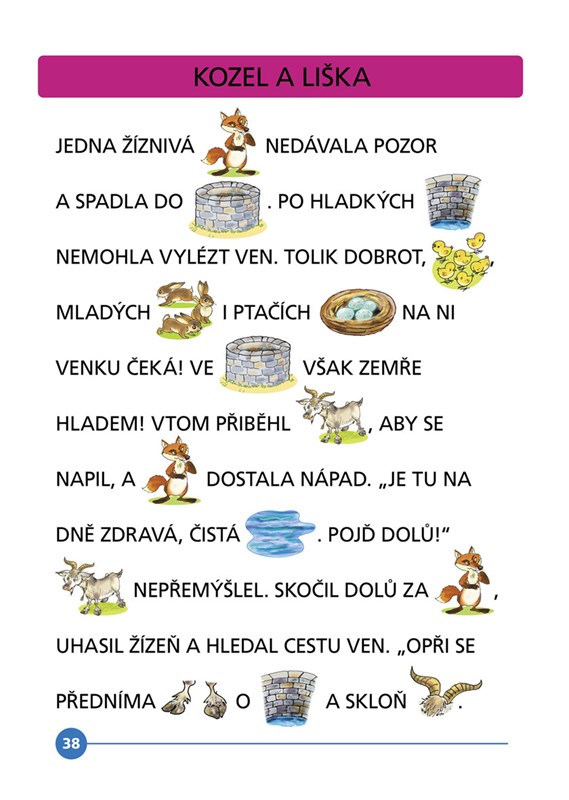Máte doma předškoláka nebo začínajícího čtenáře? Zasmějte se spolu s ním veselým bajkám a rozvíjejte jeho vnímání. Krásné obrázky, které nahrazují slova v textu, udrží jeho pozornost a čtení se stane zábavou.
