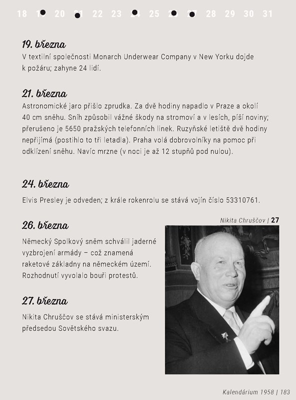 Nenápadný, ale důležitý. Tak by se dal stručně charakterizovat rok 1958. Žádná mimořádně převratná událost naši zemi nepostihla, ale ti, kteří jej pamatují, o něm mluví jako o prvním roce, kdy začal být ve společnosti cítit aspoň mírný závan svobody. Ti, kteří se v tomto roce narodili, vkročili do světa, který se sice pomalu, ale přeci jen zlepšoval. Trvalo to do jejich desátých narozenin.