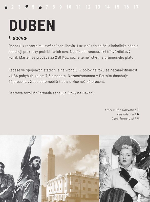 Zavzpomínejme tedy na rok, kdy Mao v Číně zahajuje politiku Velkého skoku, Fidelovi spolubojovníci unášejí mistra světa F1 a v USA přichází do prodeje obruč hula-hop. V Československu začíná televize vysílat každý den, na brněnském výstavišti vyrůstá Pavilon Z a hospodyňky si konečně mohou usnadnit život pomocí oddělovače bílků.
