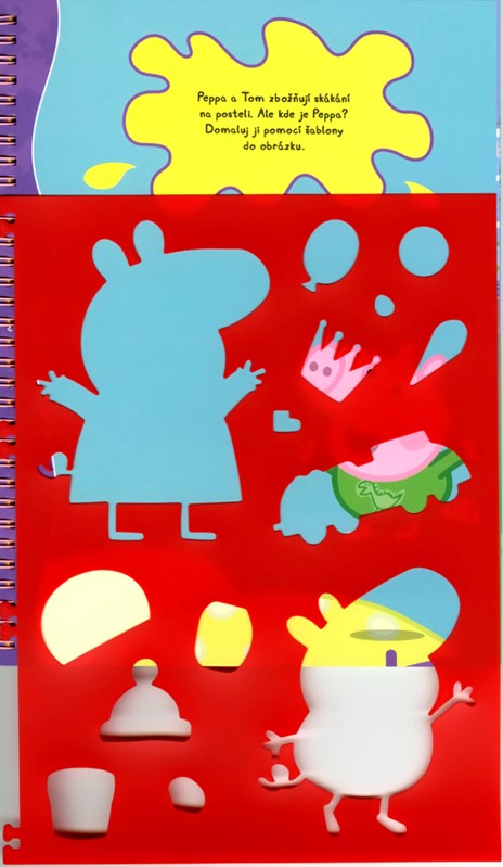 Vezměte šablonu a dokreslete Peppě korunku, spoustu balonků na velkou oslavu nebo helmu pro zapomnětlivého cyklistu. Pak obrázek dozdobte samolepkami. Čeká na vás 40 stránek s barevným pozadím a je jen na vás, čím je oživíte!