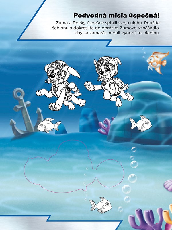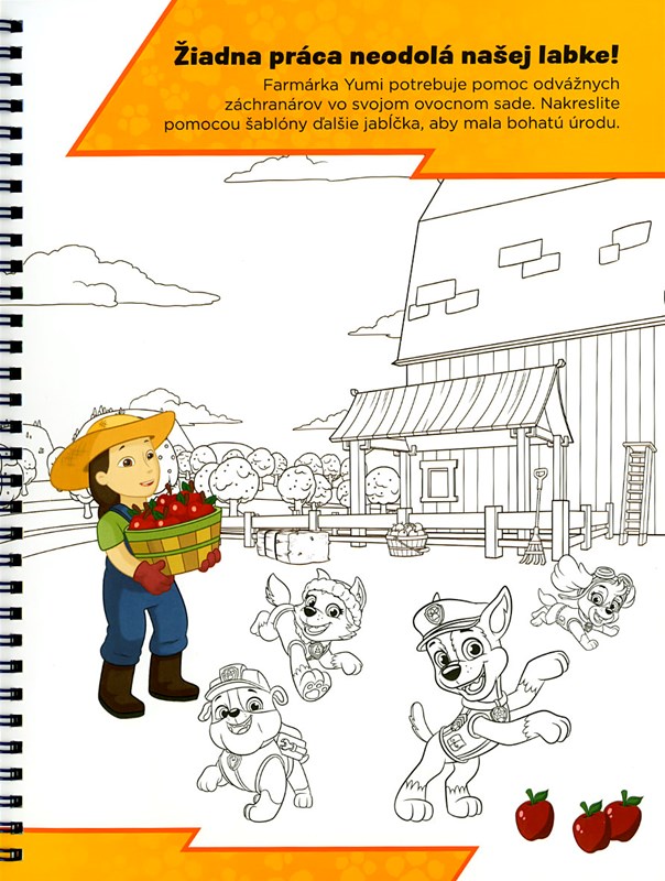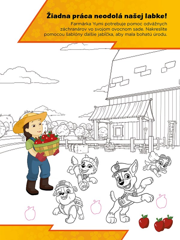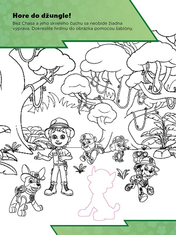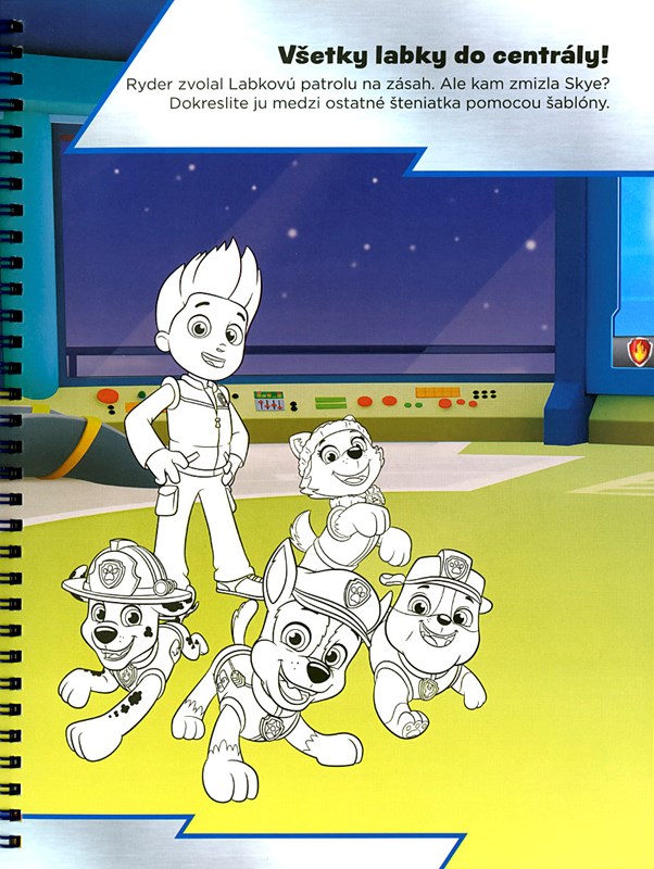 Hrajte sa a tvorte s Labkovou patrolou! Použite vlastnú fantáziu a dokončite všetky stránky s vašimi obľúbenými animovanými hrdinami! Vezmite si šablónu a dokreslite Skye do obrázka alebo domaľujte prilbu odvážneho Marshalla. Potom obrázok ozdobte pestrými samolepkami. Všetky stránky s farebným pozadím čakajú, až do knižky doplníte záchranárske šteniatka, vymyslíte pre ne dobrodružstvo, aby mohli opäť vyraziť do akcie!