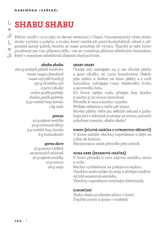 Tahle kniha není jen obyčejná kuchařka – i když zde samozřejmě najdete desítky skvělých receptů. Je i drobnou exkurzí do tajemství japonského životního stylu a filosofie japonské kuchyně. Termínem washoku se totiž označuje jak japonská strava, tak celá japonská kultura stravování, včetně sociálních a duchovních aspektů spojených s uměním servírování, konceptem respektu k jídlu, společenskosti a pohostinnosti a s pravidly týkajícími se etikety a životního stylu. V širším konceptu washoku jsou zahrnuty také tradiční japonské techniky zpracování, ochrany a propagace surovin z různých regionů Japonska.