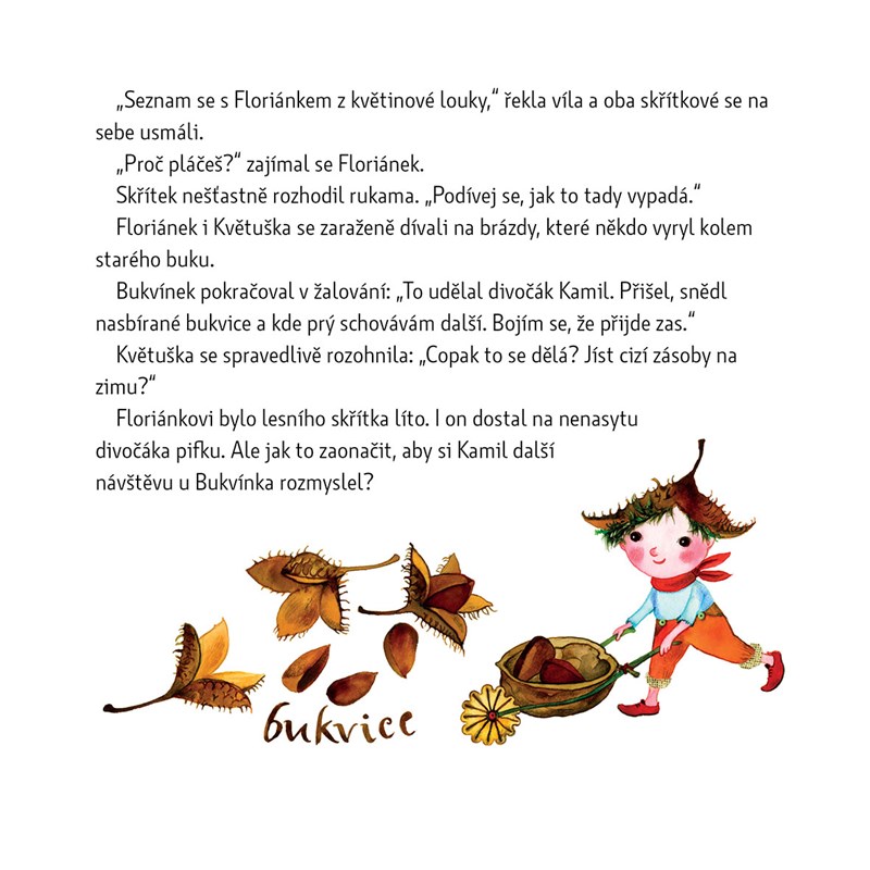 Byla jednou jedna louka, na kterou zavítala malířka. Sedla si do trávy, vytáhla barvičky a malovala, až namalovala skřítka Floriánka. Ten vám byl – úplně jako živý! Tím by celý příběh mohl skončit, jenže skřítek skutečně obživl, vyskočil z papíru a vydal se prozkoumávat svět. Když se k němu teď přidáte, zjistíte, jak si uplést kalhoty z trávy, skamarádíte se se skřivánkem a dalšími ptáčky, poznáte krásné květiny a ještě mnohem víc. Toto pohádkové vyprávění vám ukáže ty nejúžasnější zázraky přírody!