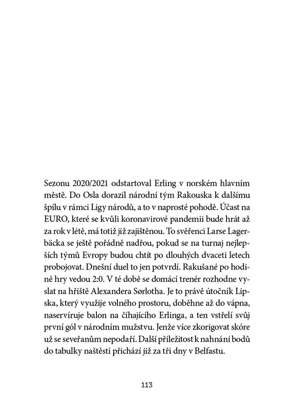 Renomovaný sportovní novinář Roman Smutný přichází s poutavým životopisem mladého člověka, kterému leží fotbalový svět u nohou. Neopomíjí jeho kořeny, spočívající mimo jiné v tom, že i jeho otec byl vynikajícím fotbalistou, a Erlingův životní příběh popisuje od nejútlejšího dětství přes začátky v profesionálním fotbalu po dosavadní nejdůležitější zápasy Norovy kariéry.