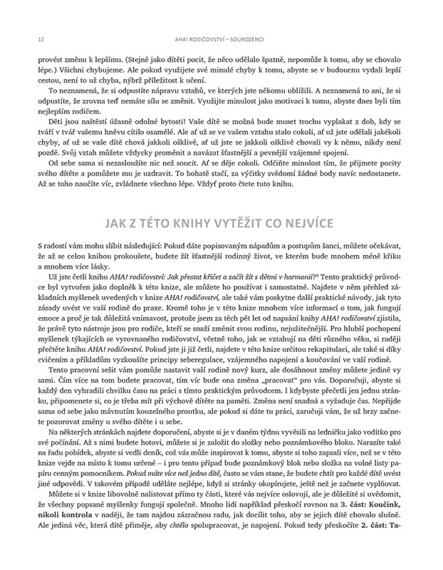 Dr. Laura Markhamová pomohla už milionům rodičů lépe porozumět vlastním dětem i sobě samotným. Nyní můžete její transformativní přístup využít ještě více do hloubky – tento praktický průvodce shrnuje principy jejích bestsellerů AHA! Rodičovství a AHA! Rodičovství: Sourozenci a pomocí inspirativních návodů a cvičení vás povede po cestě k větší harmonii v rodině. Osvojte si principy, díky nimž se naučíte vést děti s empatií, nastavit jim zdravé hranice a vychovat z nich sebevědomé a šťastné dospělé.