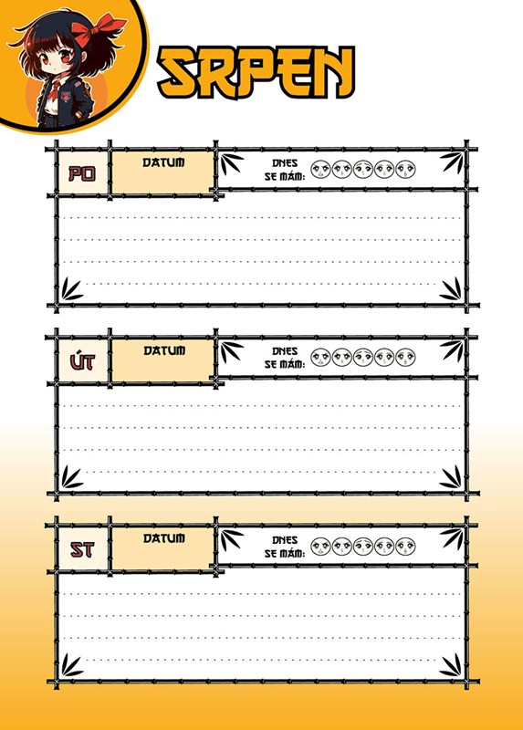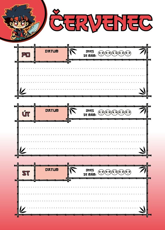 Najdeš v něm nejen praktický týdenní diář na jakýkoliv školní rok, barevný rozvrh hodin a přehledný roční plánovač, ale především spoustu šikovných manga holek a kluků, kteří trousí vtipné komiksové hlášky a v záloze pro tebe mají hromadu naprosto nepostradatelných taháků!