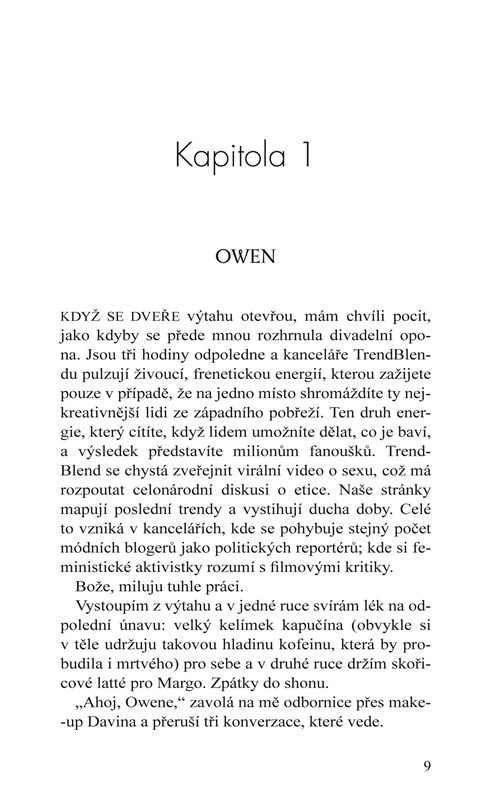 Co se stane, když se zamilujete do své nejlepší kamarádky a kolegyně? Mám tu nejskvělejší práci na světě. Randím s krásnými ženami a píšu o tom. Ovšem rád bych svůj seznamovací blog posunul na vyšší úroveň. Toužím po vlastní online reality show. Jenže je tu malý zádrhel. Moje šéfka chce, abych tuhle show uváděl s ženským protějškem. A chce, aby to byla právě má nejlepší kamarádka a kolegyně, Margo. Já budu randit s kráskami a ona se sexy muži. Sice je to fér, ale nesnesu ji vidět s někým jiným. Čím víc s ní pracuju, tím víc chci náš vztah dostat mimo přátelskou zónu. Zvládneme zachovat profesionalitu?