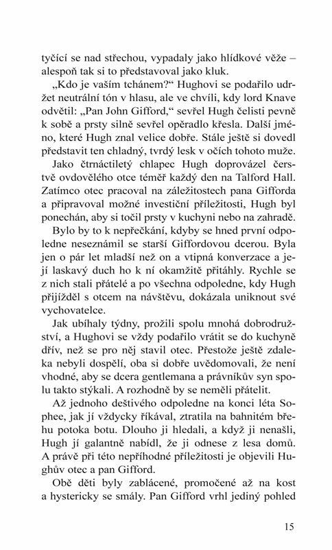 A tak se Sophia skoro po deseti letech setkává s Hughem Quintonem, z něhož vyrostl elegantní, okouzlující a úspěšný právník, jenž pomáhá aristokratům, kteří se dostali do finančních problémů, zlepšit jejich hospodaření. Sophiini rodiče však na něj zle zahlížejí a vyšší společnost ho nebere jako sobě rovného. To ale Sophii nezabrání, aby se do něj nezamilovala. Poté musí uvážit, jak daleko je ochotná pro svou lásku zajít a co všechno obětovat…
