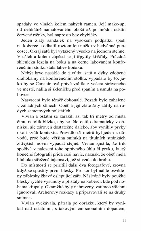 Vivian Brazierová si nikdy nepředstavovala, že jako umělecká fotografka bude čekat na noční telefonáty, aby vyfotila děsivá místa činu. Ačkoliv se snaží proměnit fotografování v novou uměleckou formu, ví, že díky současné práci může zaplatit účty.