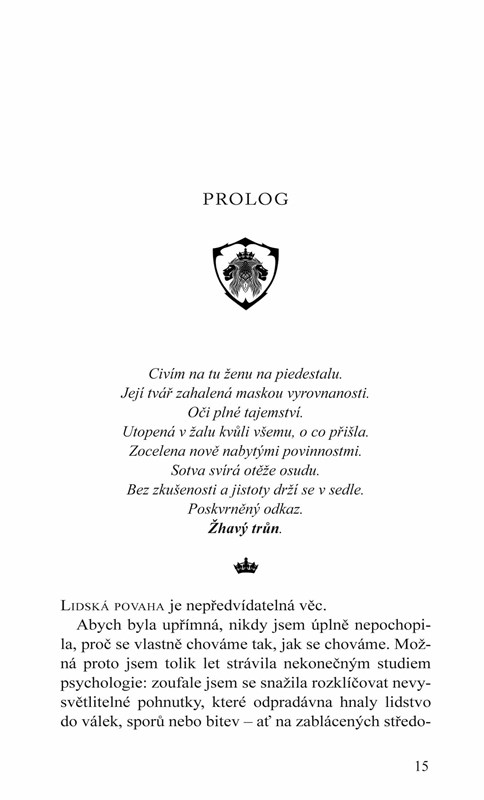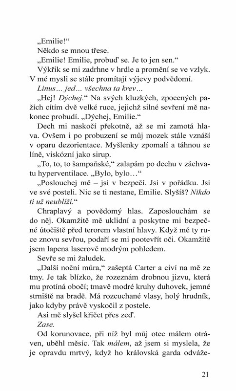 Ještě nedávno byla Emilia Lancasterová obyčejnou dívkou žijící běžným životem. Nyní se následkem kruté rány osudu ocitla s korunkou na hlavě v královském paláci jako jediná dědička germaniánského trůnu. Emiliiny dny jsou najednou plné charitativních plesů, tiskovek a dalších královských povinností, ovšem s přílivem nových nápadníků a kvůli blízkosti Cartera Thornea - jediného muže, kterého nemůže mít - nejsou ani její noci klidné.