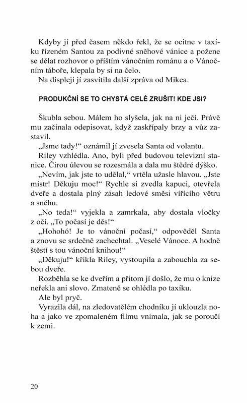 Úspěšná spisovatelka romancí Riley Reynoldsová si na slavení Vánoc nepotrpí, tráví je prací a jediné, co si ze svátků opravdu užívá, je svařené víno. Takže když si u ní vydavatel objedná milostný román s vánoční tematikou, je z toho víc než rozpačitá.