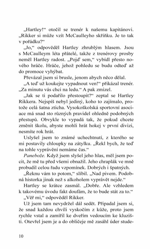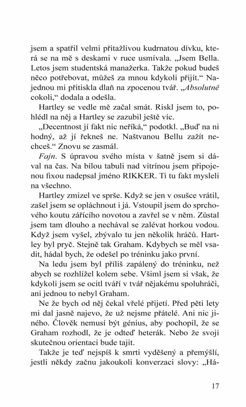Rikker rozhodně nečekal, že by ho Graham přivítal s otevřenou náručí, ale to, že se mu ani nepodívá do očí, ho také překvapilo. Jak to tak vypadá, jeho bývalému… nejlepšímu kamarádovi, nebo příteli, nebo co to vlastně byli, se moc nedaří. Příliš pije a během tréninku se nedokáže soustředit.