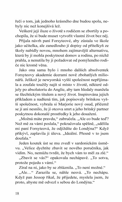 Newyorská dědička Marjorie McGannová chce prožít společenskou sezonu v Londýně a získat manžela se šlechtickým titulem, který jí pomůže utrácet zděděné americké miliony. Domnívá se, že její nový britský poručník je ideální k tomu, aby jí takového muže pomohl najít. Jenže Jonathan nemá v úmyslu dovolit, aby se přítelovo jmění promrhalo. Pod jeho bdělým, ochranitelským okem se Marjorii těžko hledá romantika… až do jednoho osudového večera, kdy ji úchvatné polibky jejího poručníka přimějí k úvahám, jestli tu největší ze všech romancí nemá náhodou přímo před sebou.