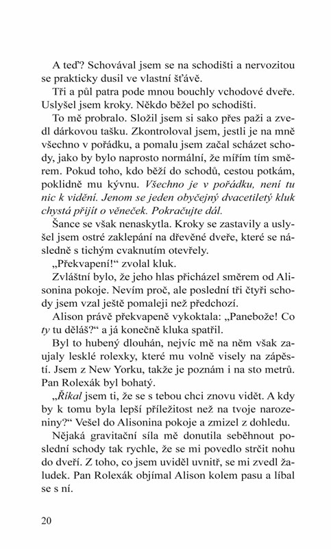 "Rafea štve, že o své panictví přišel opilý a při sexu na jednu noc. Jeho přísná katolická výchova kladla vždy důraz na to, že máte milovat bližního svého – jen tedy jiným způsobem než s láhví vína a krabičkou kondomů. Když se však Belle nalepí smůla na paty a stane se obětí vyloženě zlomyslného žertu, Rafe jí nabídne pomocnou ruku.