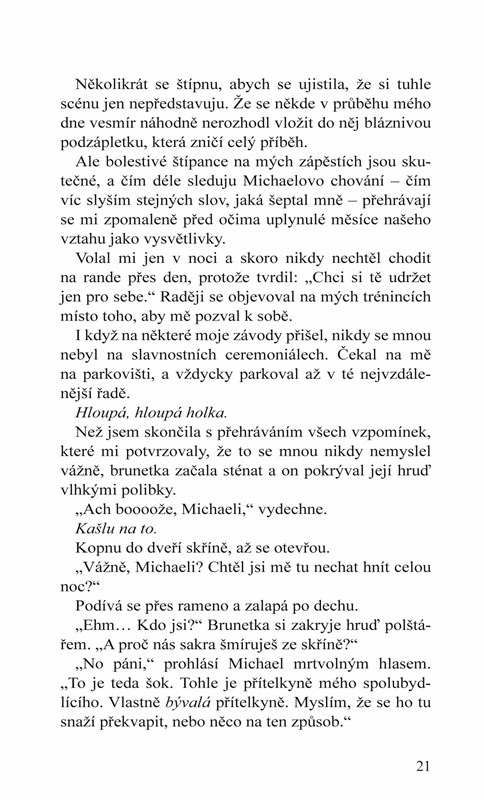 Prostě není tím, za koho ho považuješ a přitom máš někoho lepšího přímo před nosem. Máš všechny důvody pro to, abys mi nedala šanci, protože mě znáš líp než kdokoli jiný a souhlasíš se všemi těmi bulvárními plátky, které mě nazývají Nafoukaným králem New Yorku a Nezkrotným playboyem Manhattanu. Jsem si ale naprosto jistý tím, že by ti bylo líp s někým jiným, a chci, abys to věděla.