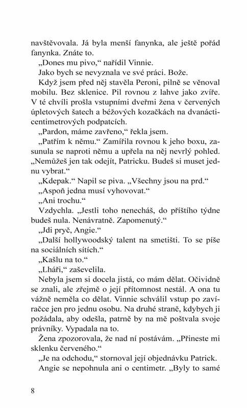 Za patřičný obnos může nechat práce číšnice a hrát roli jeho spolehlivé přízemní přítelkyně. Co však – krucinál – nemůže, je vyhnout se rostoucí vzájemné přitažlivosti. Jenže mít v patách paparazzi a vidět svůj život rozpitvaný na sociálních sítích je nejlepší cesta k panické atace. A i když je Patrick na plátně okouzlující darebák, ve skutečném životě jde o stopětaosmdesáticentimetrového nepochopitelného, nádherného, zádumčivého bručouna, který si od ní udržuje odstup… ale také v ní budí dojem, že tohle pouto mezi nimi možná není jenom hrané.