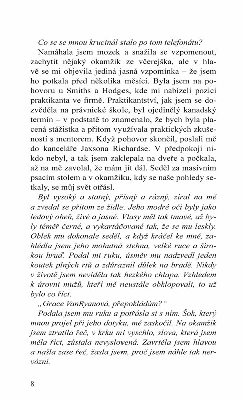 Grace, nejstarší dcera Richarda VanRyana, má život jasně daný: studium práv, kariéra v ABC a před sebou zářivou budoucnost. Než do něj vstoupí Jaxson Richards. Je úplně jiný, než si plánovala. Starší, sexy, nedostupný. A hlavně – je to její šéf.