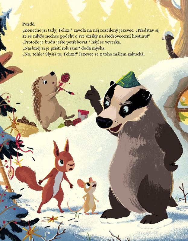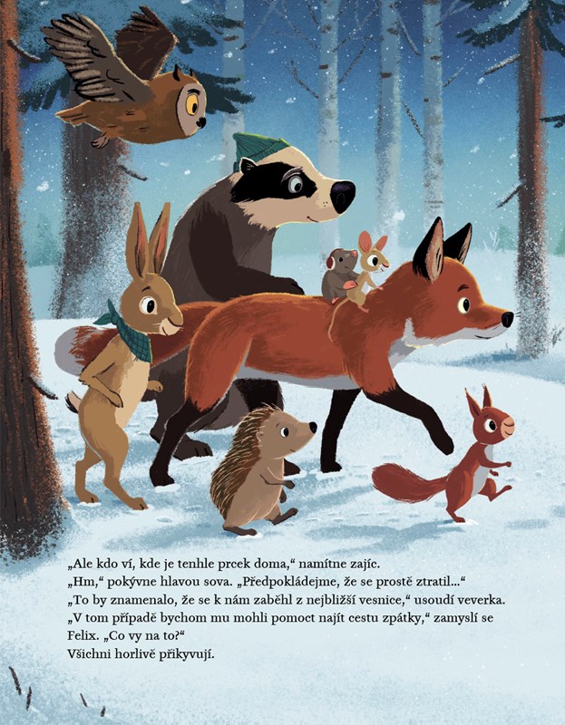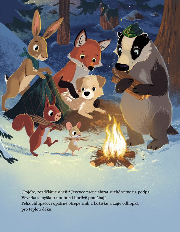 Lišák Felix toho má právě dost. Místo aby se zvířátka v lese těšila na Vánoce, pořád se jen hádají. Je s podivem, že přes jejich hlasy zaslechne z podrostu tichounké kňučení. Všichni se vydají za zvukem a ve sněhu objeví štěně chvějící se zimou. Chudák pejsek! Asi se ztratil!