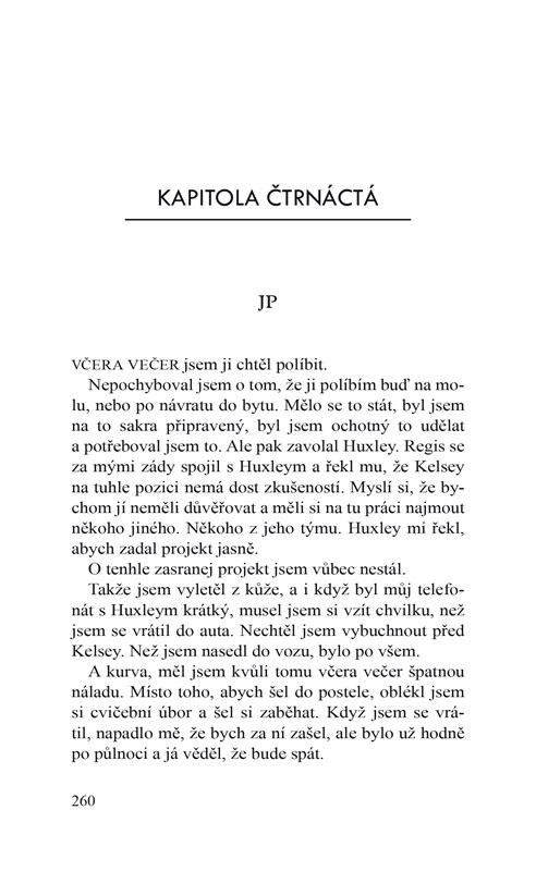 Když pominu skutečnost, že si osvojil nějakou za vlasy přitaženou představu z filmu Když Harry potkal Sally, podle které muži a ženy, co spolu pracují, nemohou být kamarádi, můžu s jistotou říct, že my dva nikdy kamarádi nebudeme. Je otravně hlučný, až protivně hezký a dovedl k dokonalosti umění, jak mě několikrát denně totálně vytočit.
