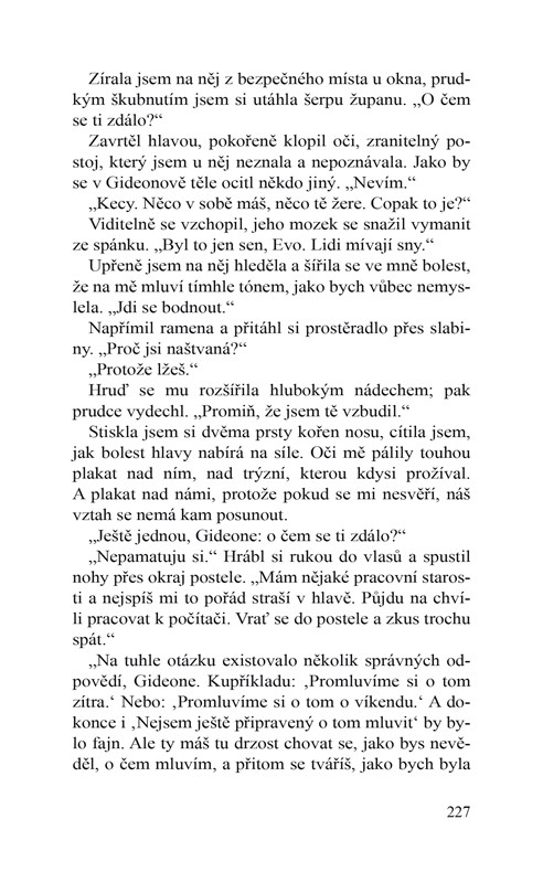Gideon věděl. I on měl svoje démony. A oba jsme se stali zrcadly, která v sobě navzájem odrážela naše nejtajnější světy… a touhy.