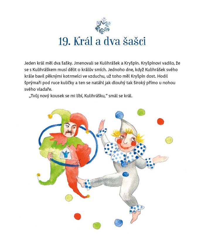 Najděte si v rušném předvánočním čase chvilku pro sebe a zpříjemněte si čekání na Ježíška společným čtením. Dvacet čtyři pohádek s kouzelnou atmosférou potěší děti i dospělé. V pohádkách potkáte Lucii, Barborku či Mikuláše. Poznáte princeznu Drdolínu nebo krejčíka Nitku. A když budete dobře poslouchat, možná uslyšíte zvonit vánoční rolničky…