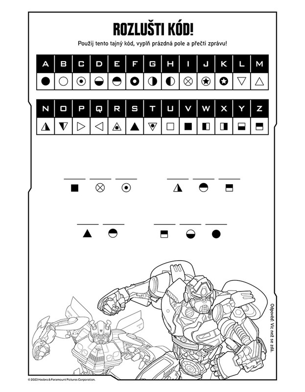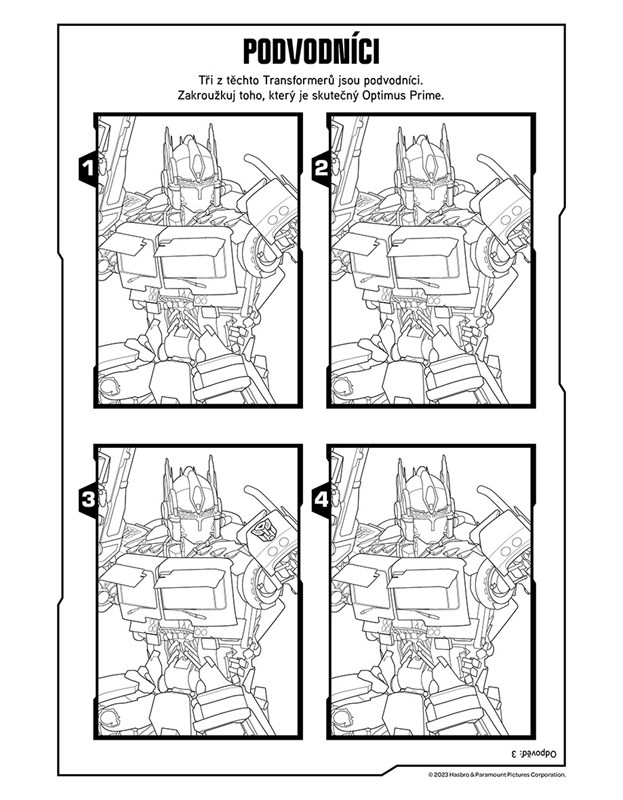 Transformeři jsou zpátky se spoustou zábavných úkolů, omalovánek a všeho, co patří do jejich světa! Vybarvěte svoje oblíbené hrdiny, proveďte je bludišti, vyluštěte tajné kódy! Pomůže vám s tím nejen Optimus Prime!