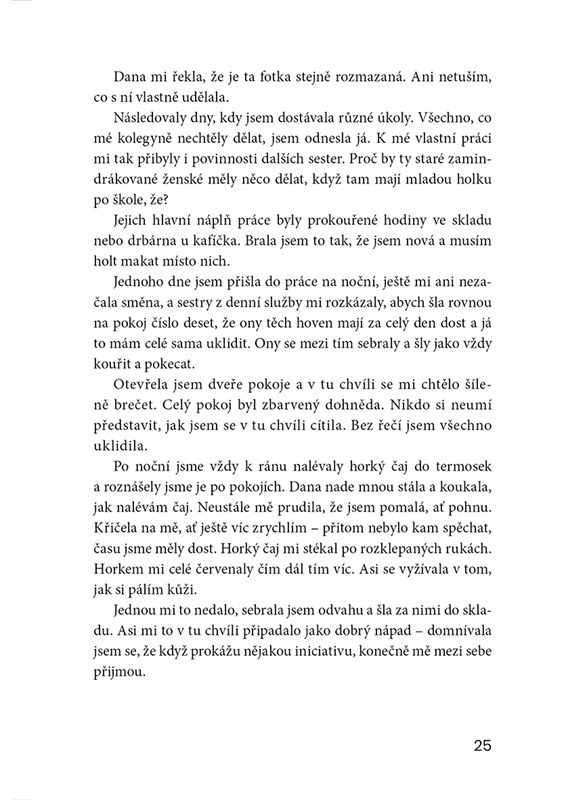Kniha je jakousi zpovědnicí zdravotních sester, které si prošly nebo procházejí šikanou na pracovišti. Na místě, kde tráví nejvíce času. Na místě, kde se léčí a uzdravuje. Za zavřenými dveřmi se kromě léčebných procesů odehrávají ještě další příběhy. Kniha mapuje osudy žen, které se ocitly v nepříjemných situacích a některým z nich chování kolegyň zapříčinilo vznik vážných onemocnění. Nejenže si prošly složitým dětstvím, ale ani v pracovním životě na ně nečekalo zrovna příjemné přivítání.