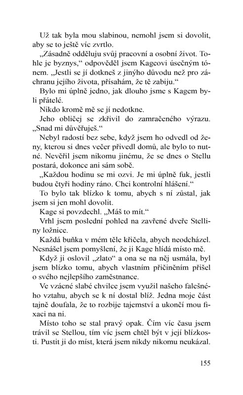 Je objektem jeho nejtemnějších tužeb, jedinou hádankou, kterou nedokáže vyřešit. A když se mu naskytne příležitost dostat se k ní blíž, poruší svá vlastní pravidla a přijde s nabídkou, kterou ona nemůže odmítnout.