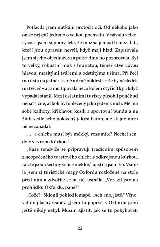 Gemma už má po krk kancelářské práce, a tak si v Oxfordu otevře malebnou čajovnu. Když se ale v podniku najde tělo zavražděného amerického turisty, ocitá se mladá žena uprostřed záhady zahrnující dávno pohřbená tajemství oxfordské minulosti. Rozjíždí se vyšetřování, které vede detektiv Devlin O’Connor, její dávná láska. Čajovna ale krachuje, a tak se Gemma za pomoci čtyř zvědavých postarších dam (a drzé kočky jménem Musli) pokusí případ rozplést. Najde vraha dřív, než se vše sesype jako věž z kostek cukru?