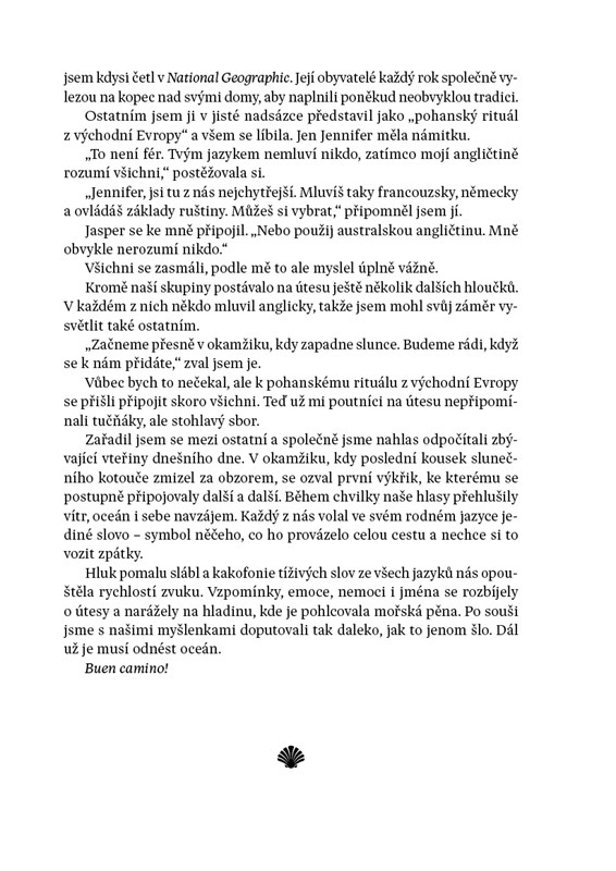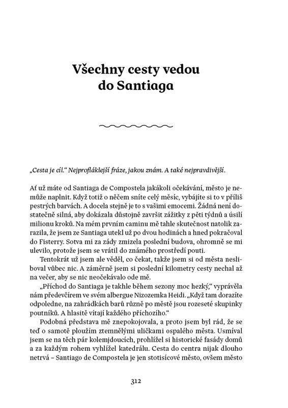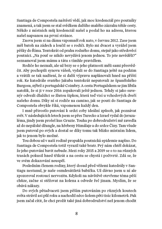 Pouť do Santiaga mi v osmnácti letech změnila život a já si slíbil jednu věc: až se budu potřebovat s něčím vyrovnat, vydám se na camino znovu. Teď nastal ten čas. Náš vlak zastavil na nádraží ve francouzském Saint Jean Pied de Port a já vystupuji ven v obklopení poutníků z celého světa. Už zítra se vydáme přes Pyreneje směrem ke katedrále v Santiagu de Compostela. Čeká nás pět týdnů plných přátelství a dobrodružství na cestě, kam se vydáváme každý sám, ale prožijeme ji společně. Připojte se k nám a poznejte ohromující tisíciletou tradici, která se znovu probouzí k životu.